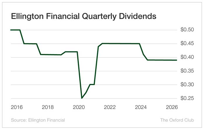 Ellington Financial is a serial dividend cutter. There have been four dividend reductions in the past 10 years – five if you group the payouts on a quarterly basis. In other words, when the going gets tough, Ellington shareholders receive lower dividends.